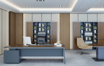 由全鋁打造的全鋁家具董事長(zhǎng)辦公桌,黑色皮紋紋理和實(shí)木紋理熱轉(zhuǎn)印的混搭突出產(chǎn)品的莊重時(shí)尚。適合各種不同方位的辦公室。